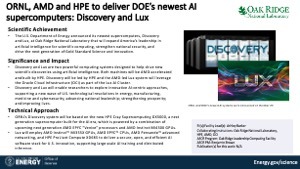 - Tags: OLCF, Discovery, Lux, AI, HPC